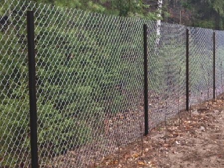 Стандартной установкой столбов для сетки рабицы, является вбивание столбов на глубину порядка 1-1,2 метра.
